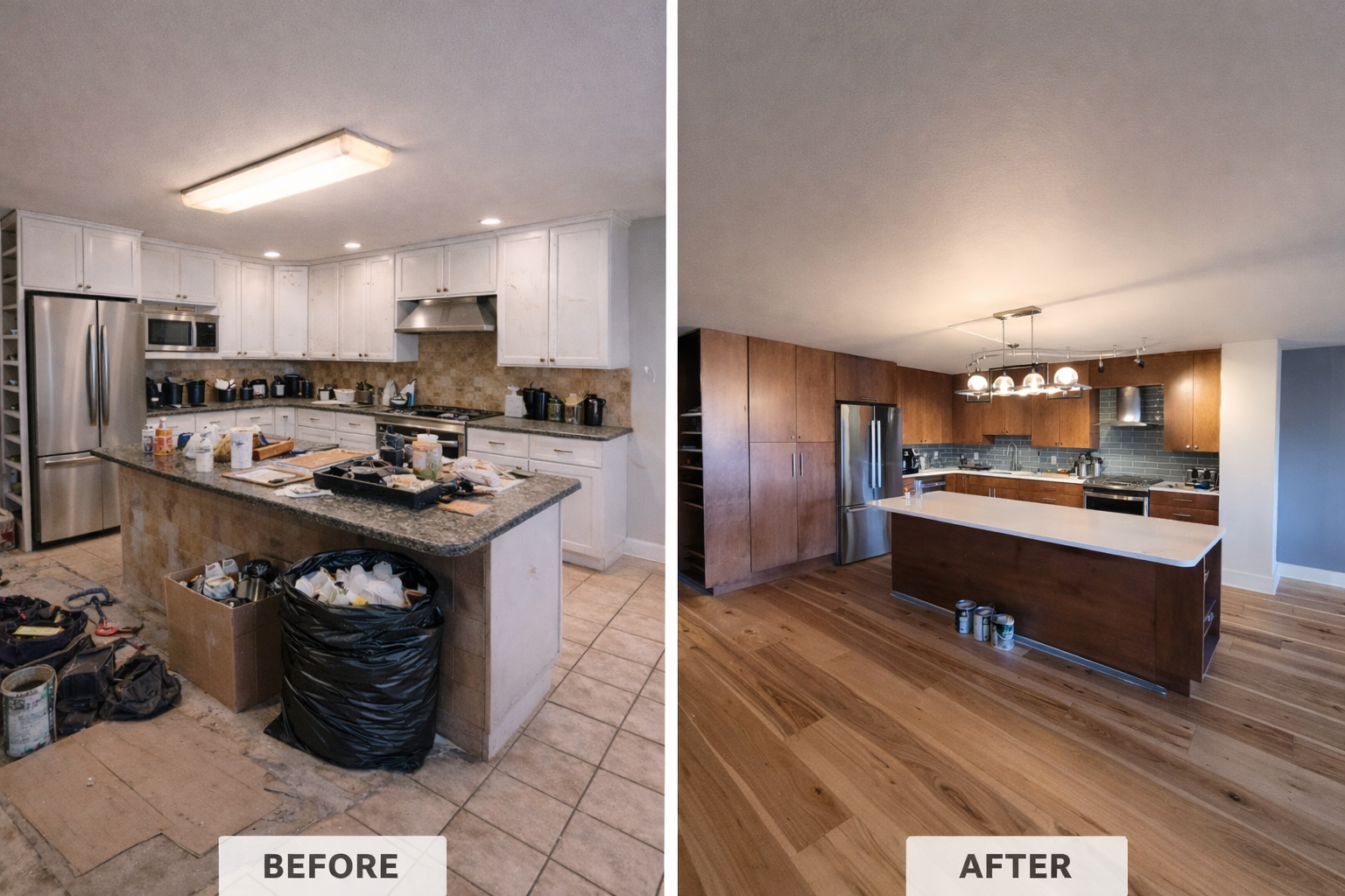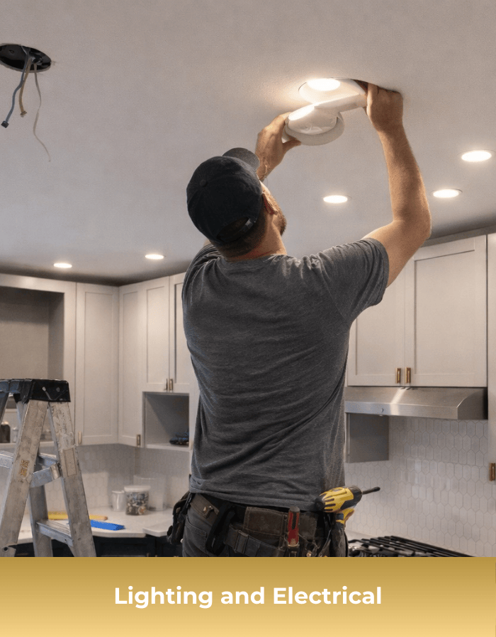 Install tile, cabinetry, countertops, paint, and fixtures with clean, precise detailing.